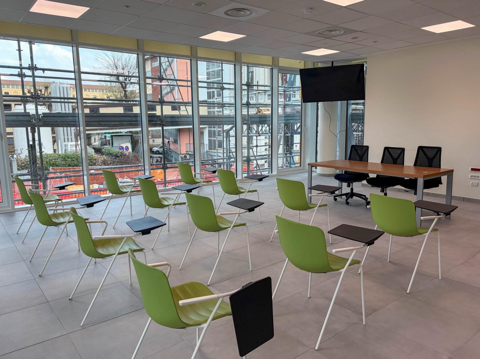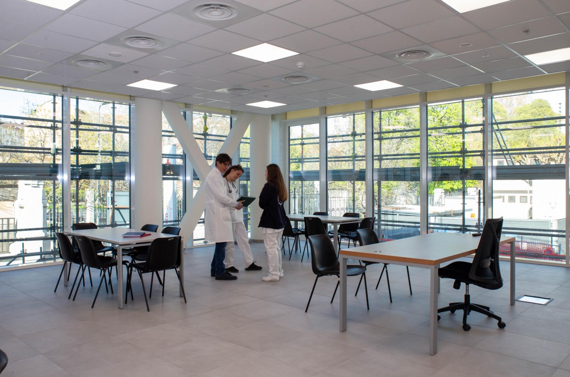 I nuovi locali situati al piano rialzato del Padiglione Guardia sono il risultato di un recupero di superficie edificabile di circa 350 mq in cui trova spazio anche una moderna e avanzata sala polifunzionale dedicata al coordinamento delle emergenze gestita dall’Unità di Crisi dell’Ospedale durante gli eventi più critici.