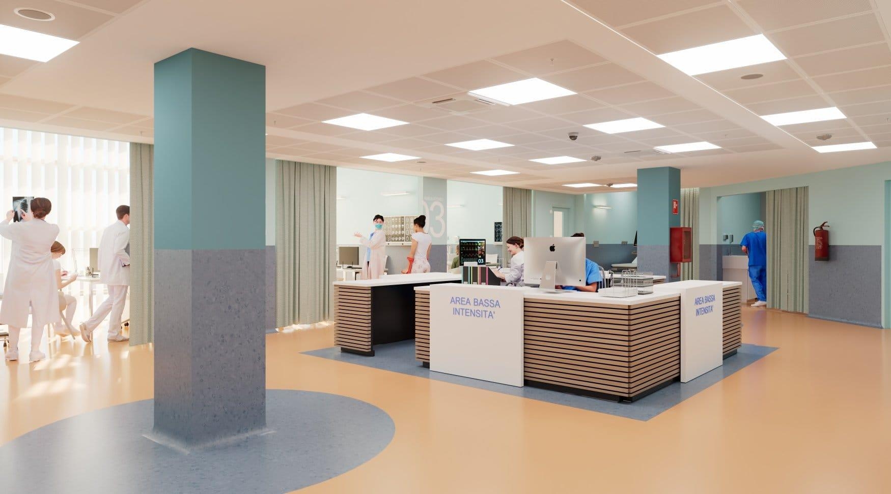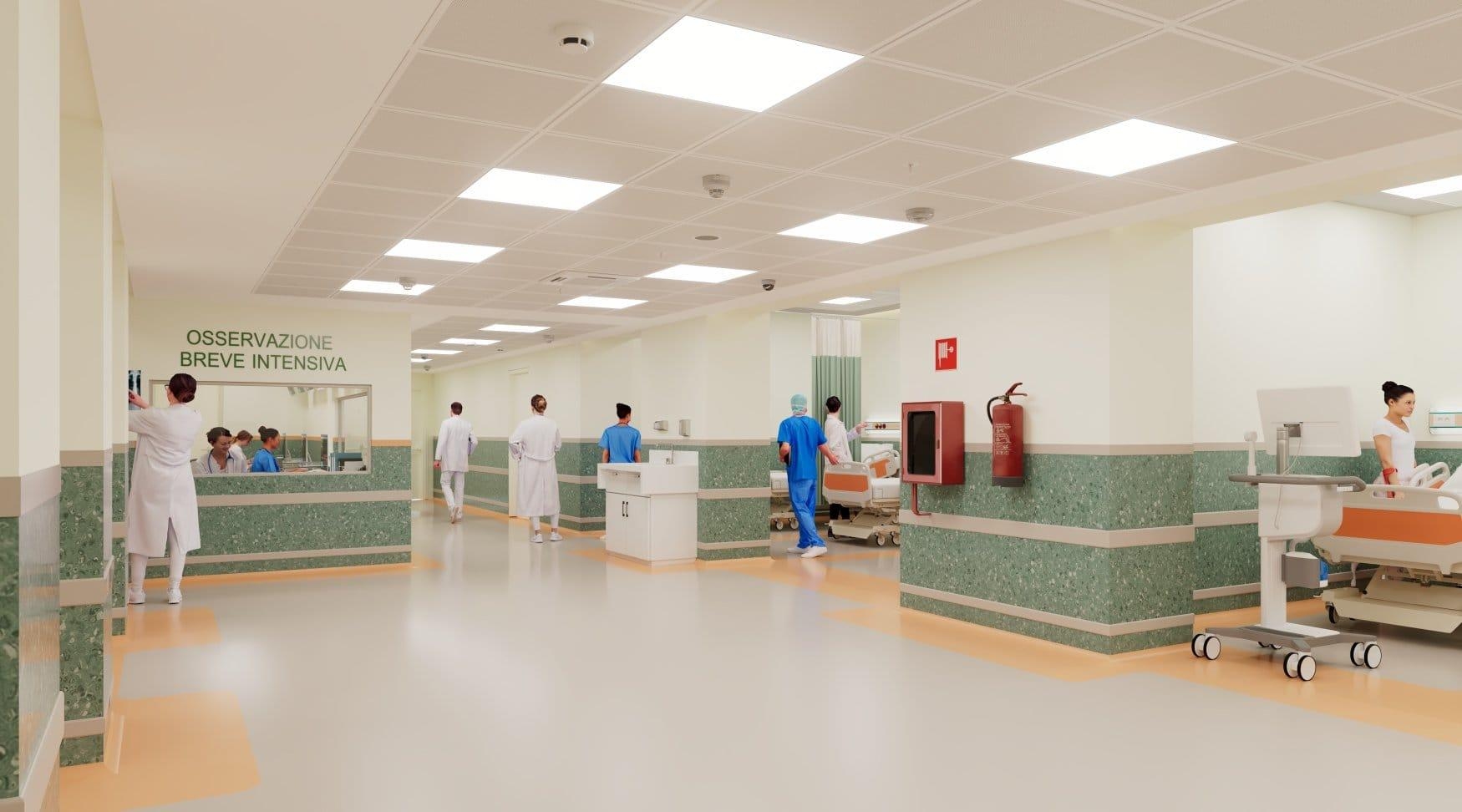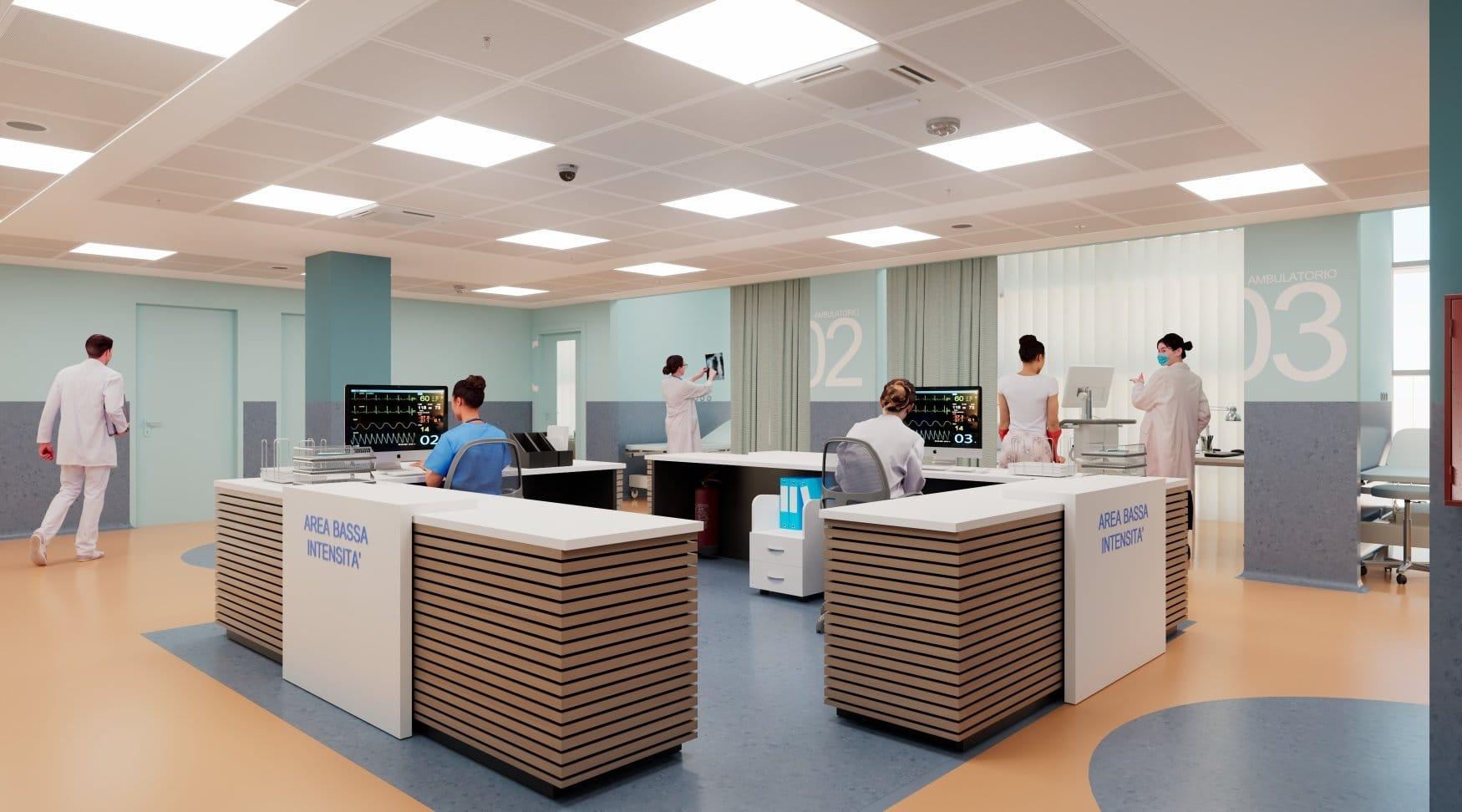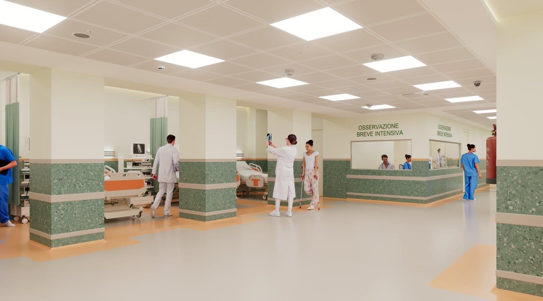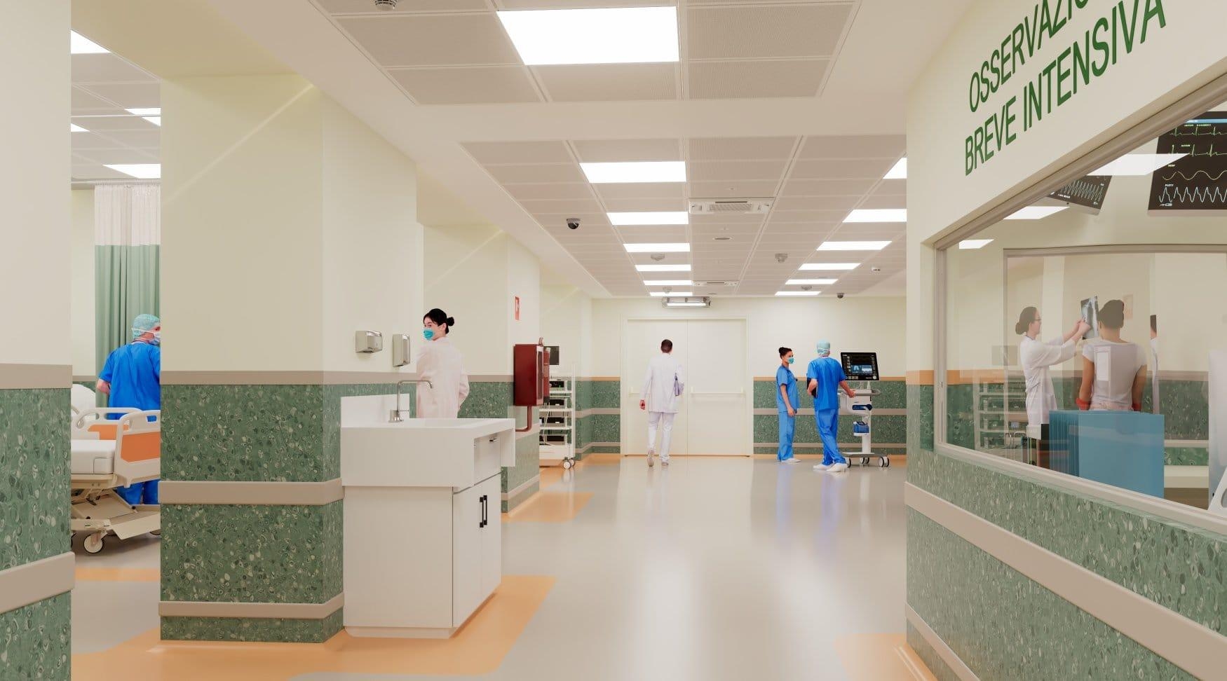 Nel nuovo progetto il cui fine lavori è previsto per la seconda metà del 2026, quattro stanze sono riservate alle degenze dei pazienti infettivi, a garanzia di un aumentato standard di sicurezza di chi accede ai servizi del Pronto Soccorso e di chi ci lavora ogni giorno.