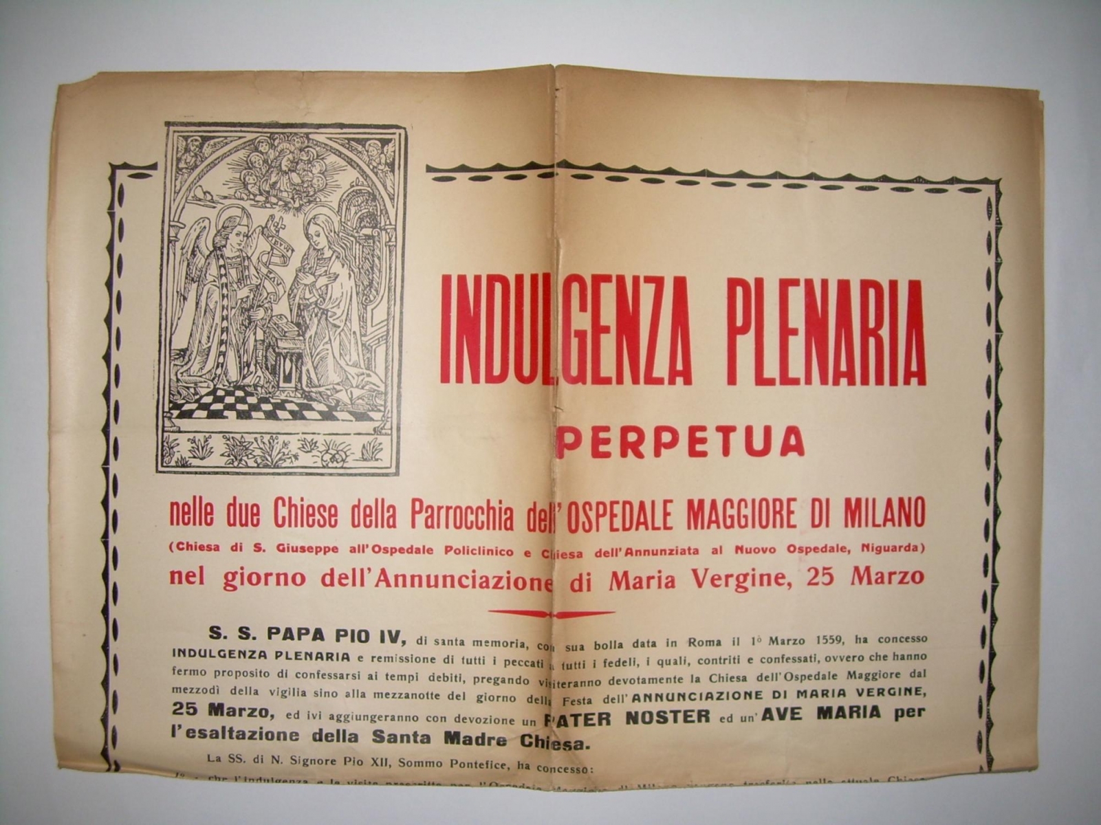 Il Policlinico di Milano lega la sua storia del passato alla fede di molti, che hanno trovato nell’Ospedale, non solo un luogo di cura per il corpo, ma anche per la propria anima. Questo passato è legato alla concessione di indulgenze. Cosa sono e come si ottenevano? Dalla Fototeca dell’Archivio Storico del Policlinico di Milano riemergono scatti in bianco e nero e documenti secolari, che raccontano un tempo in cui i fedeli ricevevano questo “premio”, in cambio del sostegno all’Ospedale.