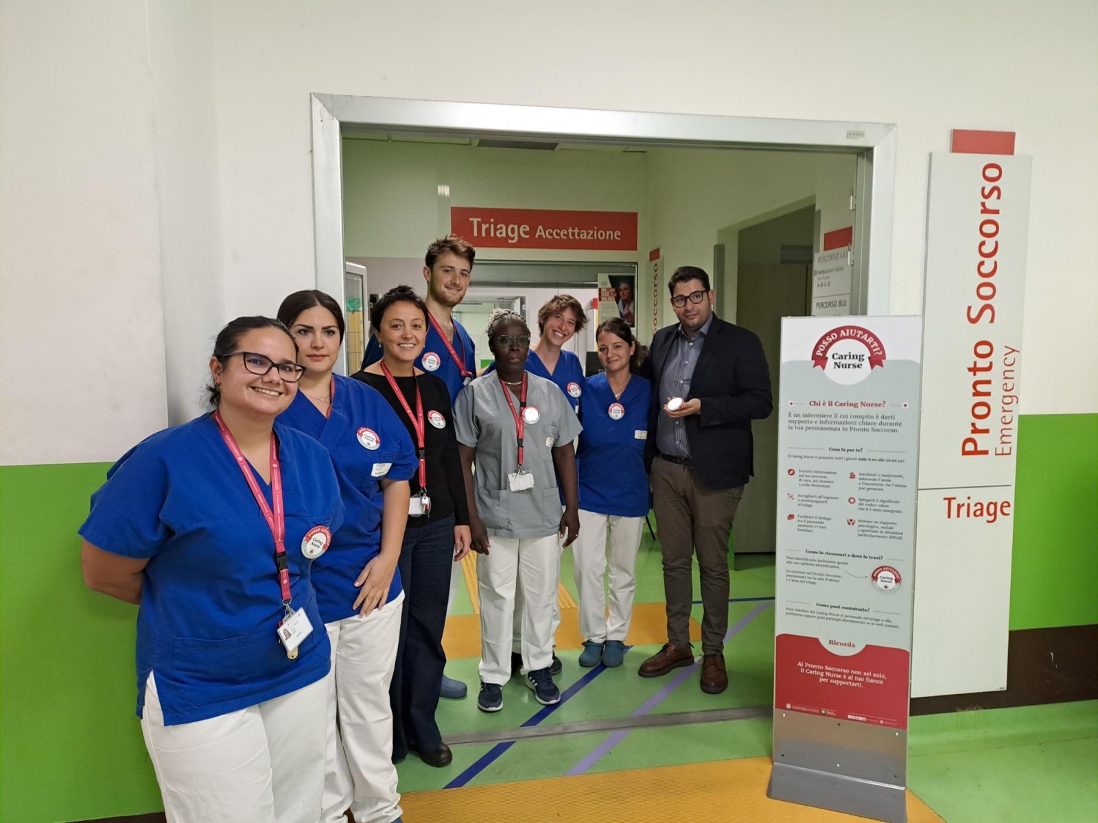 Chiara Marta, Coordinatore Infermieristico del Pronto Soccorso dell'Ospedale, commenta: «L'obiettivo è quello di migliorare la comunicazione con i pazienti e i parenti in attesa, aiutare a comprendere il percorso, i luoghi e i tempi. Ci impegniamo a creare un ponte tra chi cura e chi è curato, ridurre l'ansia, far sentire chi arriva in Pronto Soccorso accolto e supportato.» Come spiega Vincenzo De Martino, Direttore della Direzione Aziendale Professioni Sanitarie : «In Pronto Soccorso arrivano persone spaventate, disorientate, che hanno bisogno non solo di cure ma anche di qualcuno che le ascolti e le accompagni. Il Caring Nurse è lì per questo: per prendersi cura delle emozioni, per dare voce alle domande, per trasformare un’attesa difficile in un momento in cui sentirsi visti e sostenuti. Ridurre l’ansia e la frustrazione non è un dettaglio: è parte del prendersi cura.»