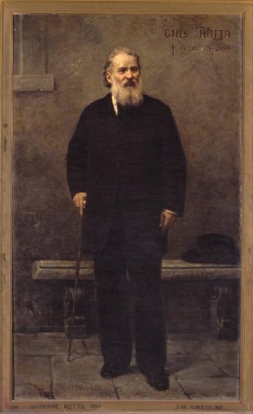 Carlo Rotta muore quasi quaranta anni prima dell’esecuzione del quadro (ultimato nel 1897). Il dipinto, definito un capolavoro del Divisionismo, viene affidato al talentuoso Giovanni Segantini: si tratta dell’unico ritratto su commissione eseguito dall’artista in tutta la sua carriera, cosa che lo rende ancora più raro, particolare e carico di significati. Per aiutarlo nella raffigurazione, vengono consegnati al pittore, che allora viveva e lavorava in Svizzera (a Soglio), alcuni abiti del defunto e un suo modesto ritratto posseduto dalla famiglia.
