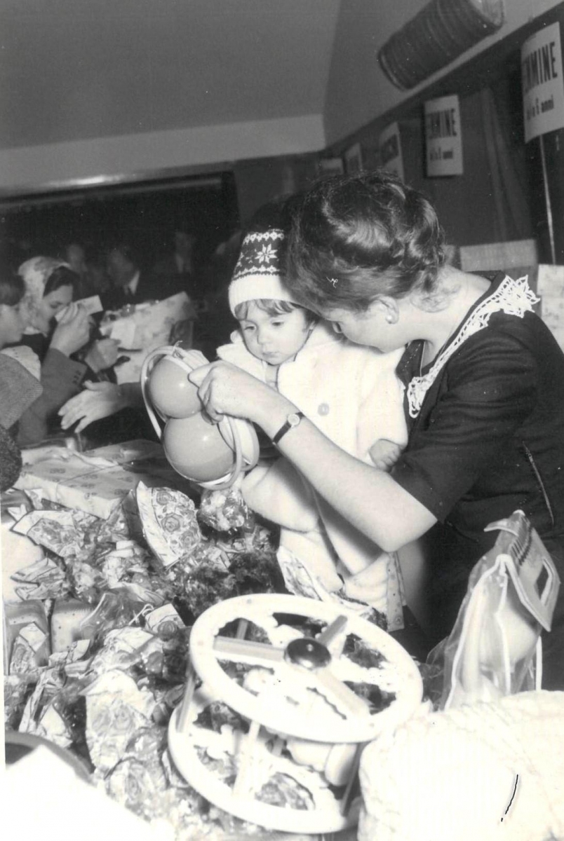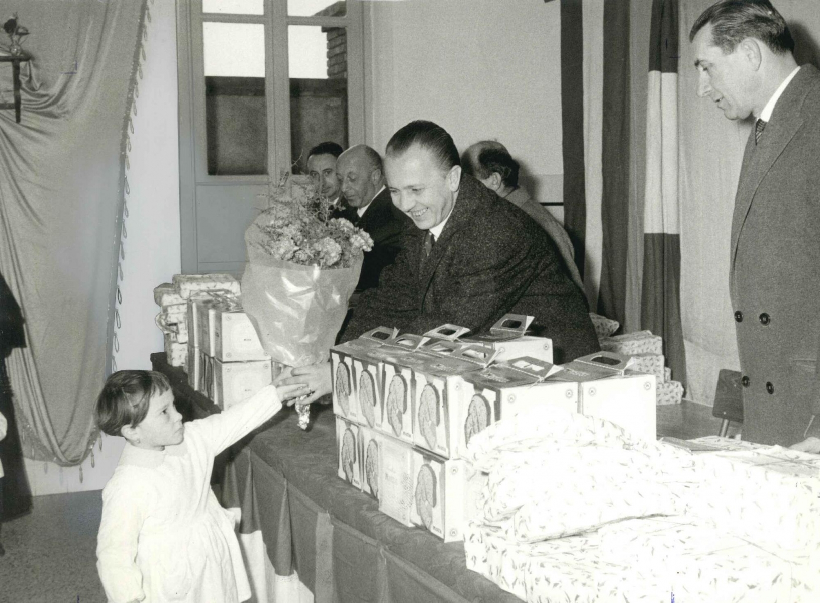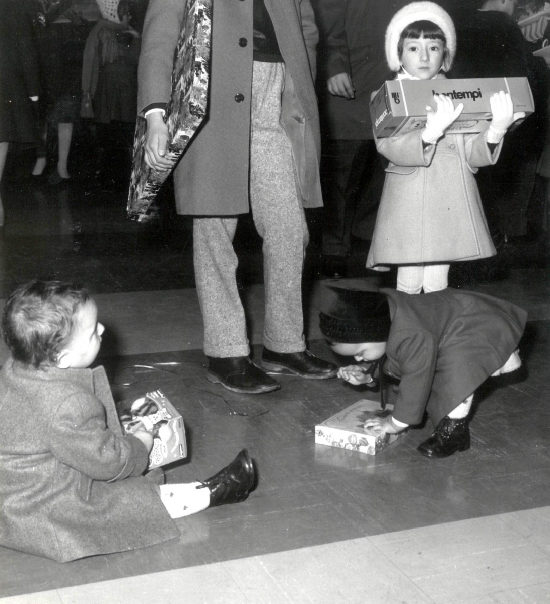 Calzette ricamate e calzoncini alla zuava sbucano dai cappottini con i bottoni, in testa calde cuffiette di lana e fra le braccia i grandi pacchetti che celano puzzle e bambolotti, palloni, peluche e giochi in scatola: all’epoca in cui non si usavano ancora cellulari e videogames, questi pacchetti non sono solo un dono da portarsi a casa, ma la dimostrazione di affetto e “cura” per le generazioni del futuro. Infine niente carbone, tutti i bimbi bravi vengono premiati dall’Ospedale con il dolce-simbolo della città, il tradizionale panettone da gustare a casa, un simbolo della festa e della genuina condivisione in famiglia.