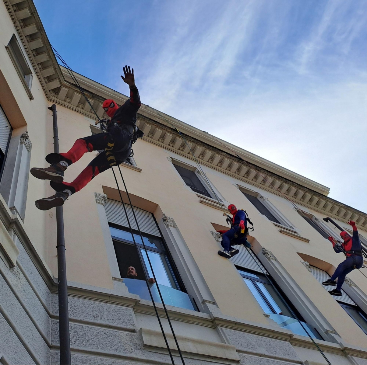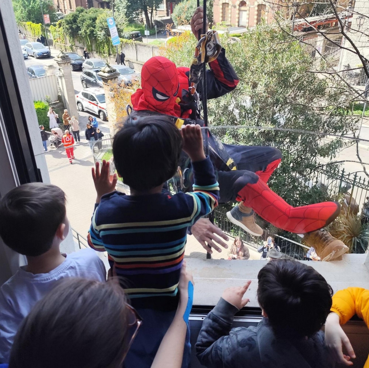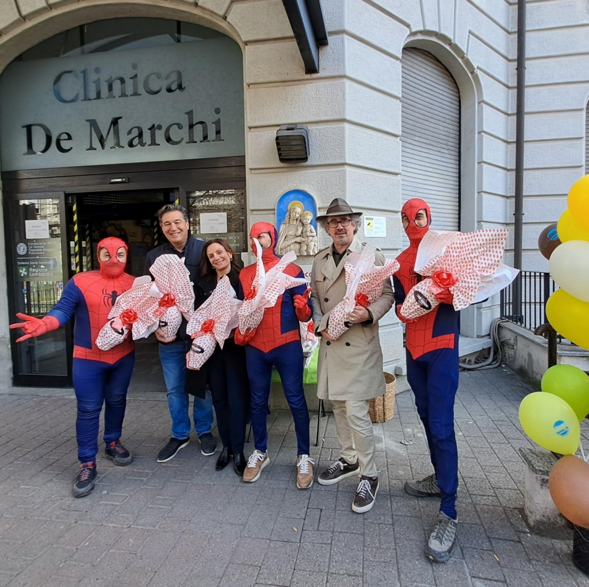 Una squadra di Spiderman si è calata dalla facciata della Clinica per donare a tutti i piccoli pazienti ricoverati, i nostri veri eroi, le uova di Pasqua di Fondazione De Marchi.