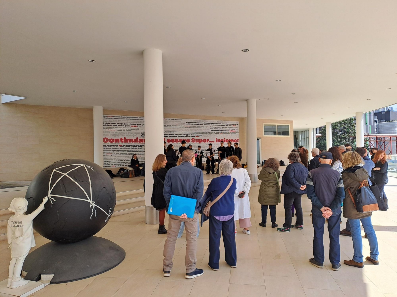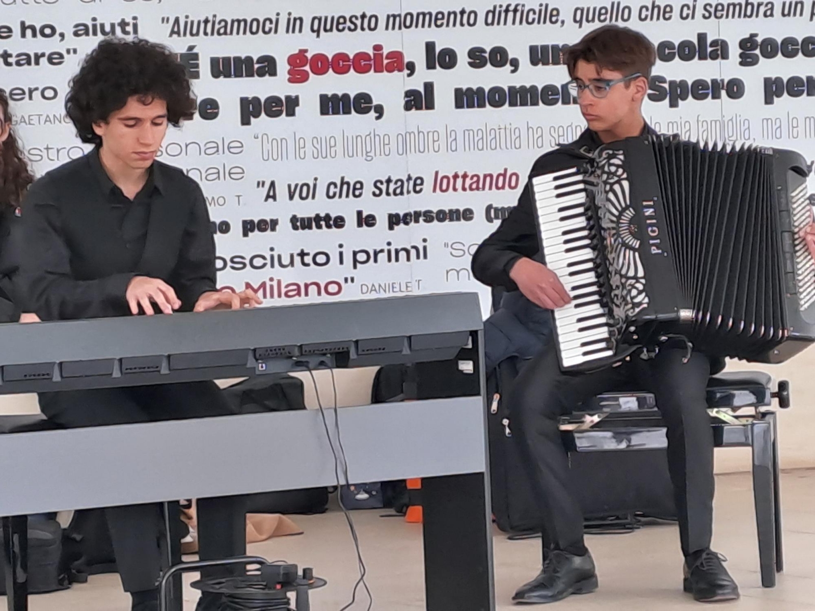 Il merito di questo "dono musicale" va alla Fondazione Monzino e agli studenti e docenti Liceo Musicale Giuseppi Verdi di Milano, che hanno saputo tradurre la musica in una forma di comunicazione profonda. Grazie al talento dei giovani musicisti, i pazienti e famiglie, ma anche il personale sanitario, hanno potuto assistere a un piccolo concerto di pianoforte e fisarmonica sognando sulle note del Libertango di Piazzolla, seguire il ritmo di brani ungheresi eseguito da un ensemble di clarinetti o sussurrane le parole di brani celebri come “Heal the world” (dall’inglese “Guarisci il mondo”) insieme al coro accompagnato al pianoforte dall’artista e compositrice Silvia Zaru.